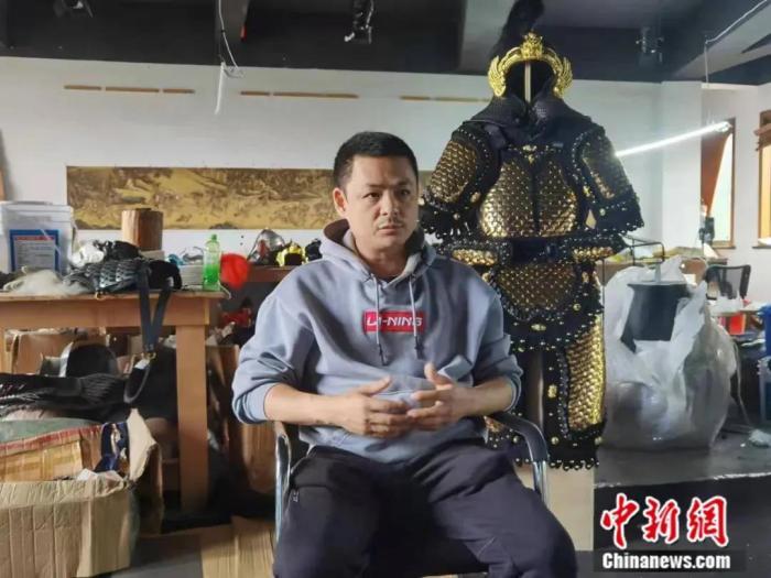 走进位于浙江海宁市区一家名为“炼铠堂”的工作室,你仿佛穿越到了古装影视剧中的铁匠铺,盔甲、宝剑、马鞍铺满了整个房间,工作室的主人温陈华正在工作台前专心设计着新铠甲。