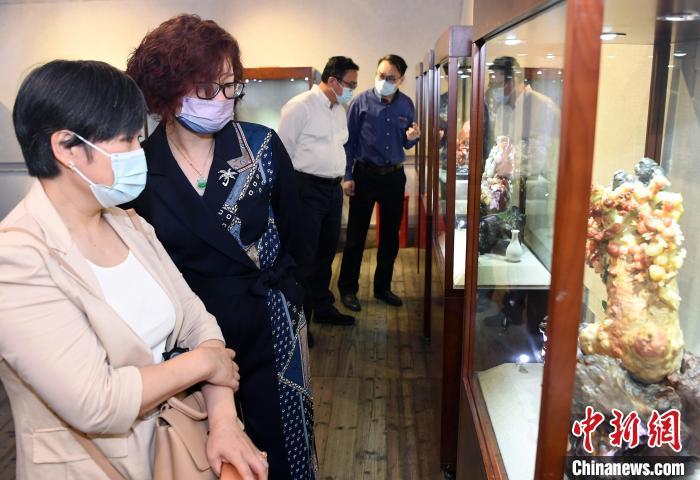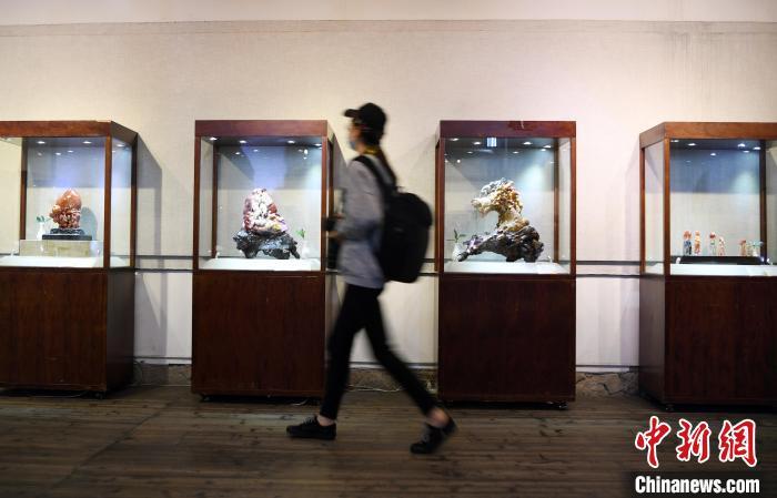 此次展览共展出中国工艺美术大师郑幼林及其19位弟子创作的45件(套)寿山石雕作品。 记者刘可耕 摄