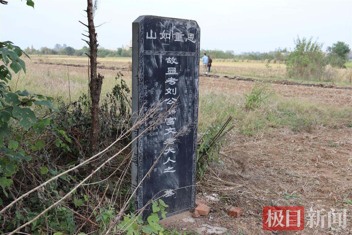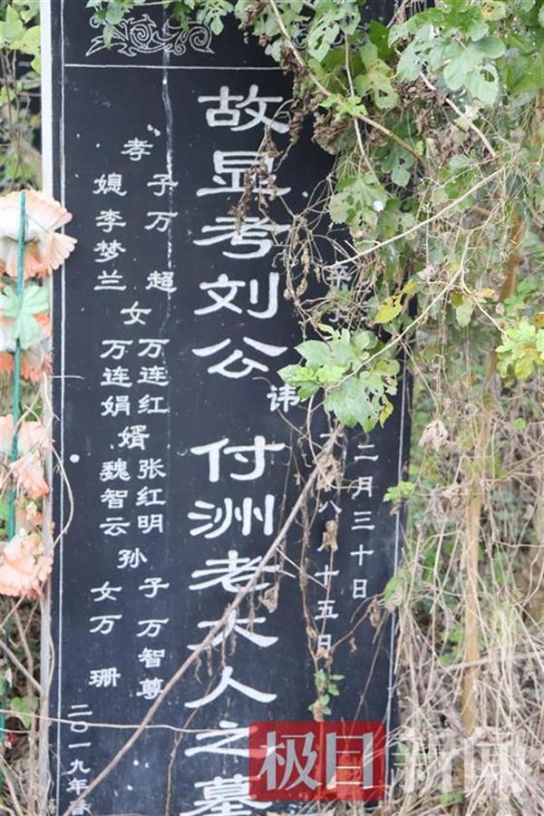 在稻田的尽头,立着几座万家人的祖坟。记者发现,这些祖坟的墓碑上,中间刻的全部都是“故显考刘公讳××老大人之墓”,而一侧的孝子、孝女,则全部都是万姓。
