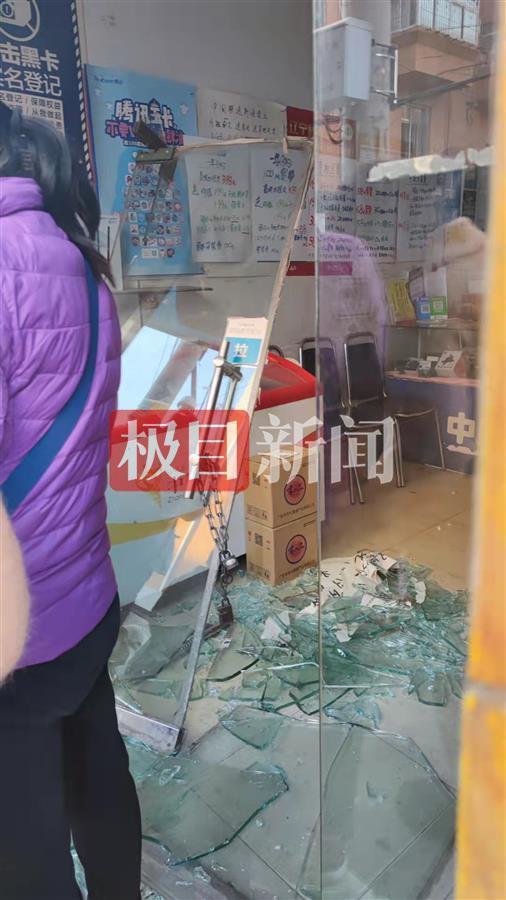 附近商户玻璃门炸坏(极目新闻记者 丁伟 摄)