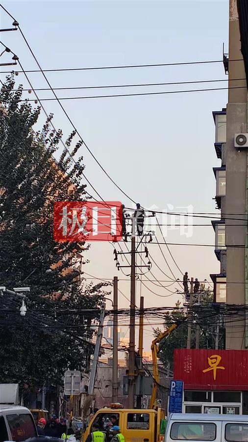 极目新闻记者在现场看到,电力部门工作人员正在电线杆上进行电路维修,事发地附近有不少发电机在运转,还有数辆大型的供电车停在附近。