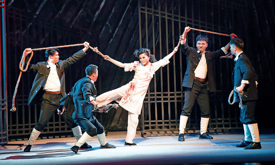 没有了彩鞋、水袖、厚底,没有了浪漫爱情与传奇神话,这出剧为人们呈现了一位忠于信仰、舍生忘死的女性。为革命,她离开爱人和孩子,却被不明真相的亲生儿子关押审讯。她穿着旗袍、高跟鞋投身红色浪潮,却在狱中饱受酷刑。但无论面对亲人还是敌人,她的每一句话既是真实的自白,也是对《共产党宣言》最有力的宣讲。