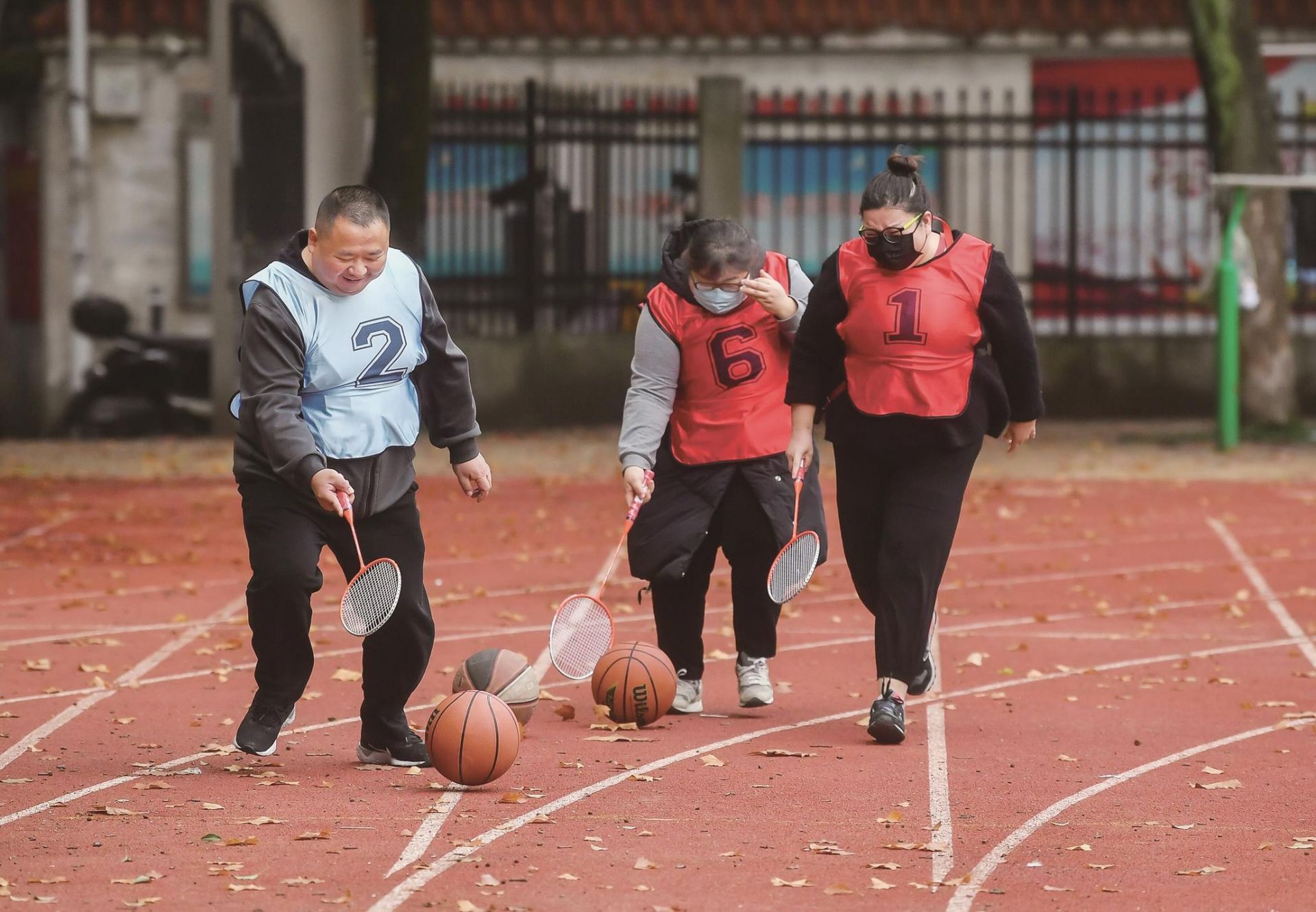 这是一场“重量级”运动会。10月21日上午9时30分,武汉大学中南医院第三届减重运动会热闹开场。羽毛球拍赶篮球、托乒乓球跑、投沙包……参赛者包括即将接受减重的胖友,还有减重成功的“前胖友”。