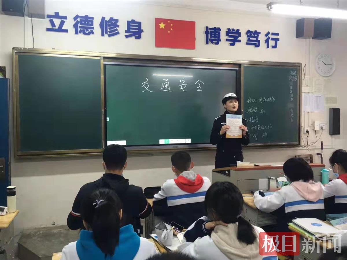 在武钢三中高一(2)班的课堂上,同学们认真聆听了民警的讲课,现场速记背诵《致广大家长的一封信》;红钢城小学四年级(4)班的同学在下课后还意犹未尽,围在授课民警刘敏身边,争先恐后地请教交通安全问题。