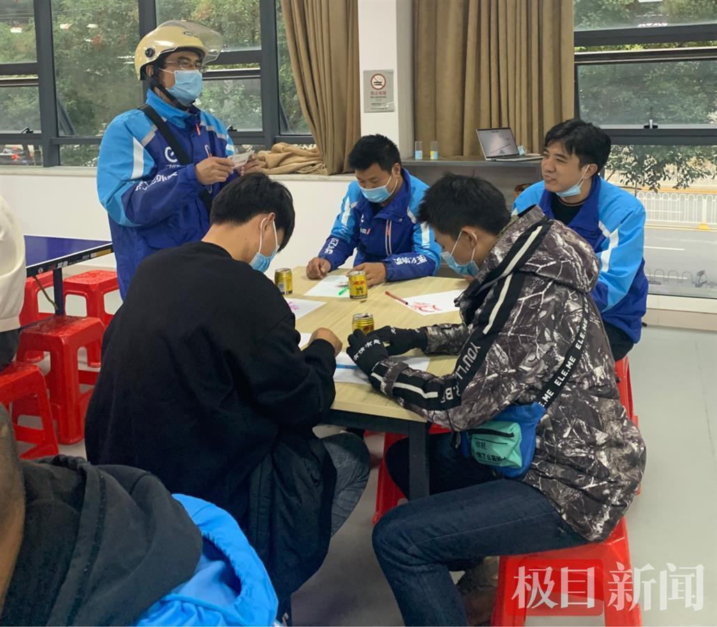 “三人一组,抱团取暖。”活动伊始,外卖送餐员们以“抱团打天下”暖场互动游戏拉近彼此距离,大家由拘谨逐渐变得放松,积极参与其中。