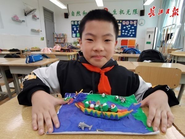 10月22日,徐志豪捧出了一大袋彩泥手工作品给长江日报记者展示。恐龙、机器人、小动物、龙舟……都是他利用课间和假期自己动手制作的。