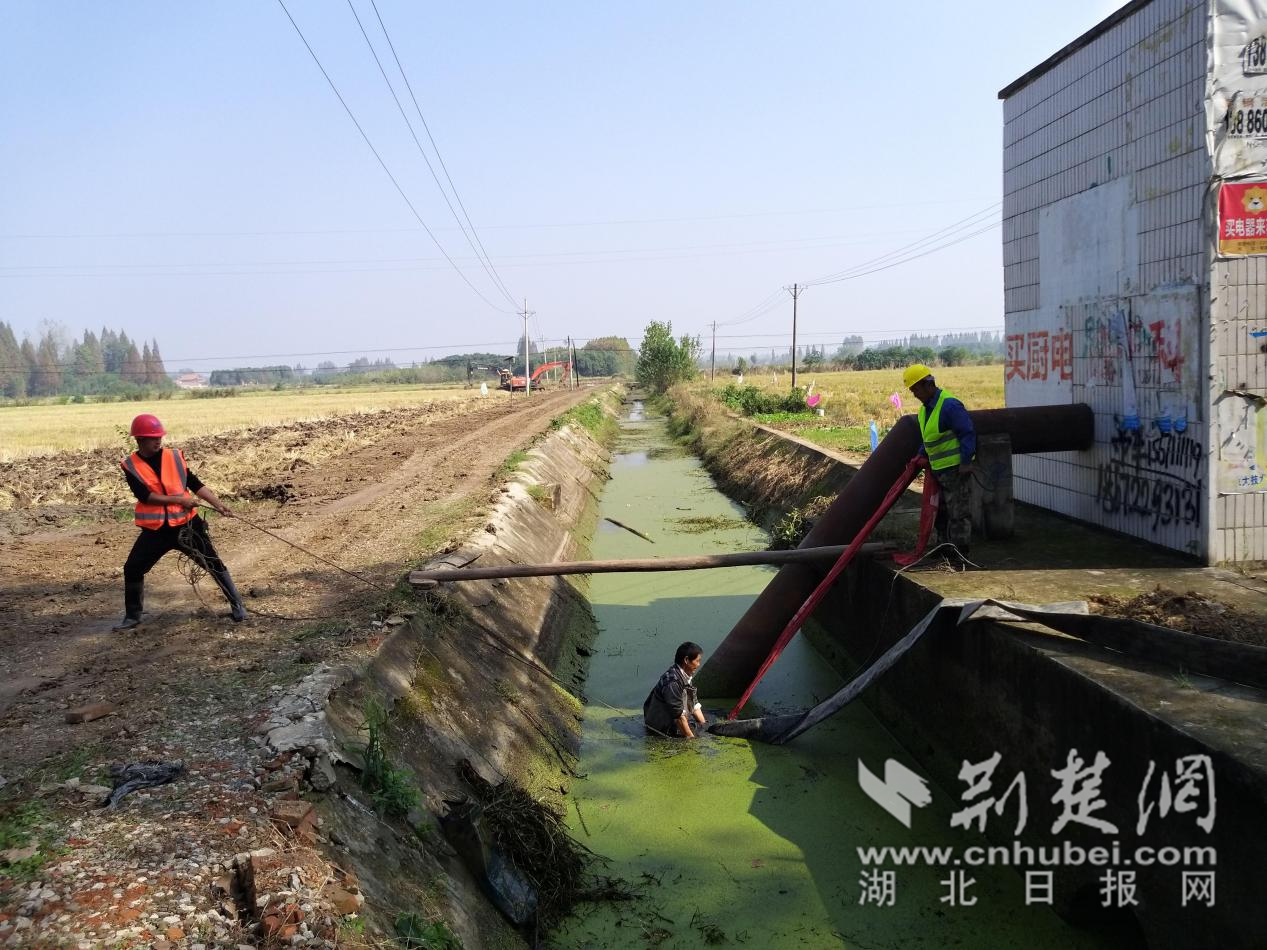 施工人员在清理淤塞的水泵。通讯员 万清平 摄