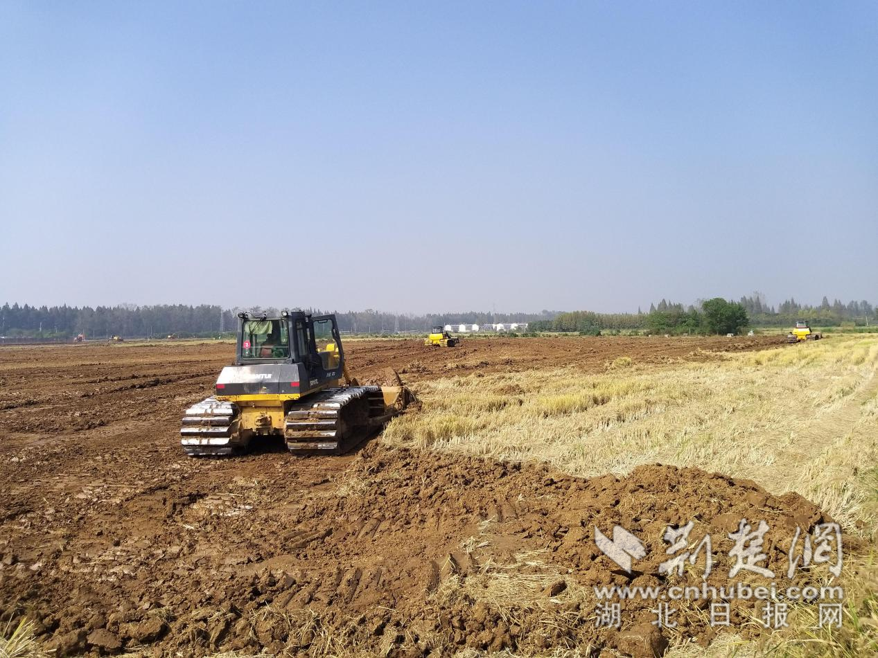 荆楚网(湖北日报网)讯(通讯员万清平)10月23日,在孝感市孝南区朱湖办事处全域国土综合整治项目建设三合片区,10多台推土机、铲车等施工机械机声隆隆、来来往往,一片繁忙。1个月来,朱湖已平整土地1800亩。