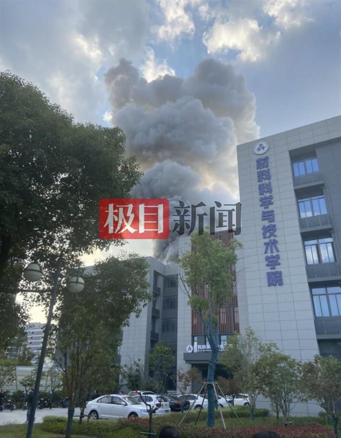 周女士(化姓)告极目新闻记者,她租住在学校附近,从6楼家里能看见,事故现场位于家对面的材料科学与技术学院实验楼。10月24日下午,她听到一声巨响,然后大楼开始冒黑烟,救护车进进出出有四五趟。