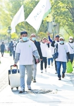 志愿者环湖健步走,宣传生态保护理念。