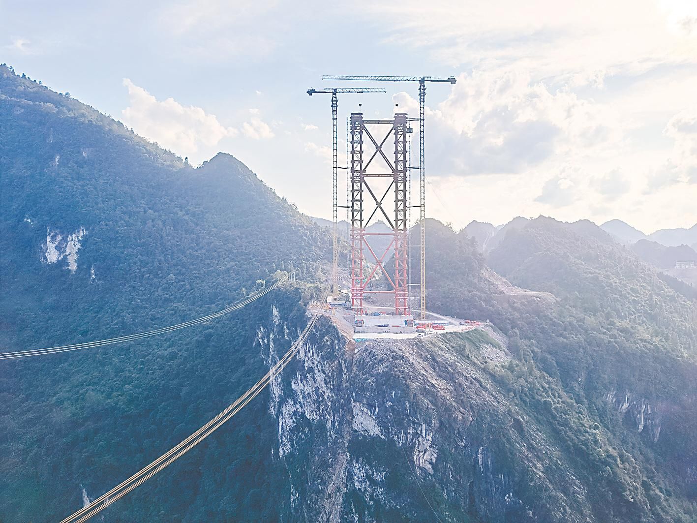 云南庄特大桥工地,也要建一座这样的“斜拉桥”。现场,一座20多米高的扣缆塔正用于两侧悬臂浇筑施工。“众多体系转换的建桥方式,只有这里能见到。”中铁大桥局项目经理夏智说。
