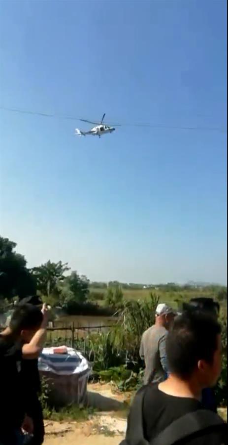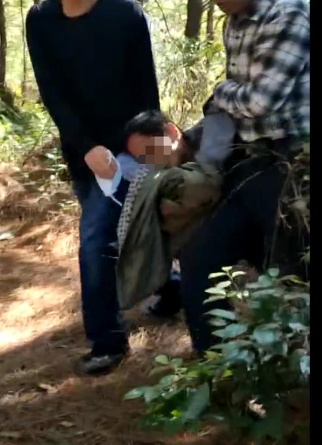 多段网络视频显示,多名身穿警服的警务人员和便装人员抬着李荣辑的四肢,从山上往下走。后来,李荣辑被装进一个包裹,被抬着前进,空中有直升机在配合行动。