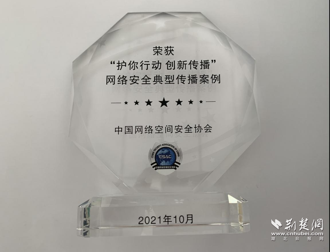 图为湖北省“国家安全教育云基地”荣获“护你行动 创新传播”网络安全典型传播案例