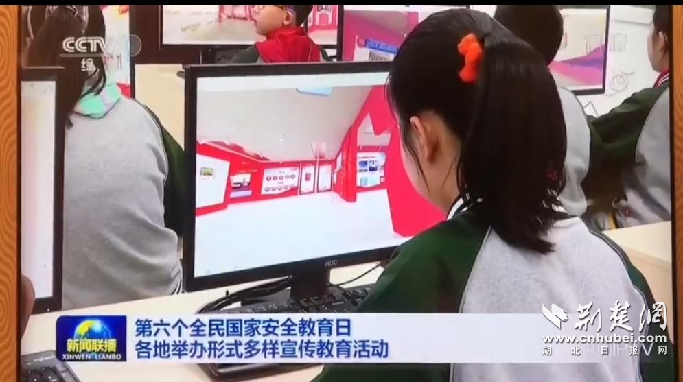 央视《新闻联播》报道湖北省“国家安全教育云基地”,图为中小学生正在参观云基地。图片来源:央视