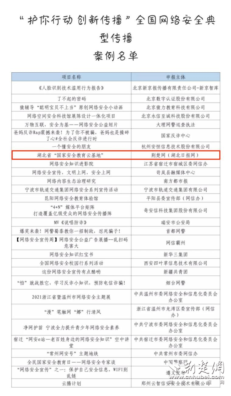 湖北省唯一获选全国网络安全典型传播案例
