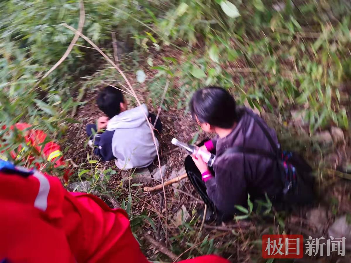 傍晚6时许,在救援队员的帮助下,母子二人安全下山。