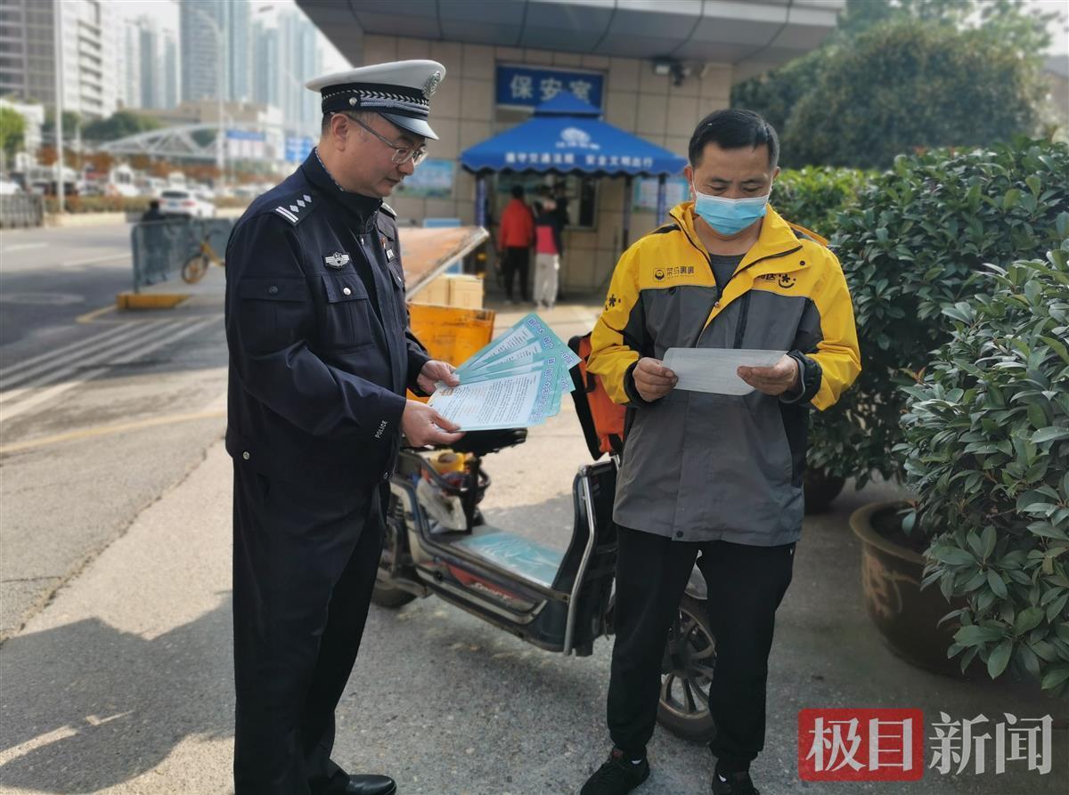 当天上午9时许,在洪山区雄楚大道桂园路整治点,交警崔彦伟、郭磊拦下一辆违规载人的电动车。“警察同志对不起!我知道电动车不能带人,我认罚!”没等交警开口,驾驶员便主动承认错误,他告诉交警,早上出门办事,半路碰到朋友要去附近公交车站,碍于面子,顺便“带一脚”,没想到刚转弯就遇上交警。随后,交警对其现场宣传电动车相关法律法规,为其送上“安全骑行十不准”小贴士,并依法对其违规载人交通违法进行处罚。