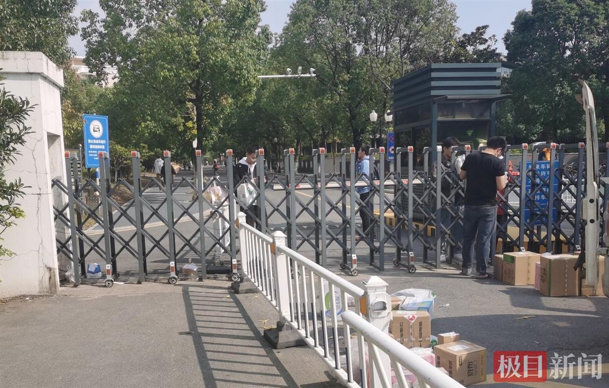 10月25日,极目新闻记者来到南京航空航天大学,因校园封闭管理,有多名学生在校门口取快递。