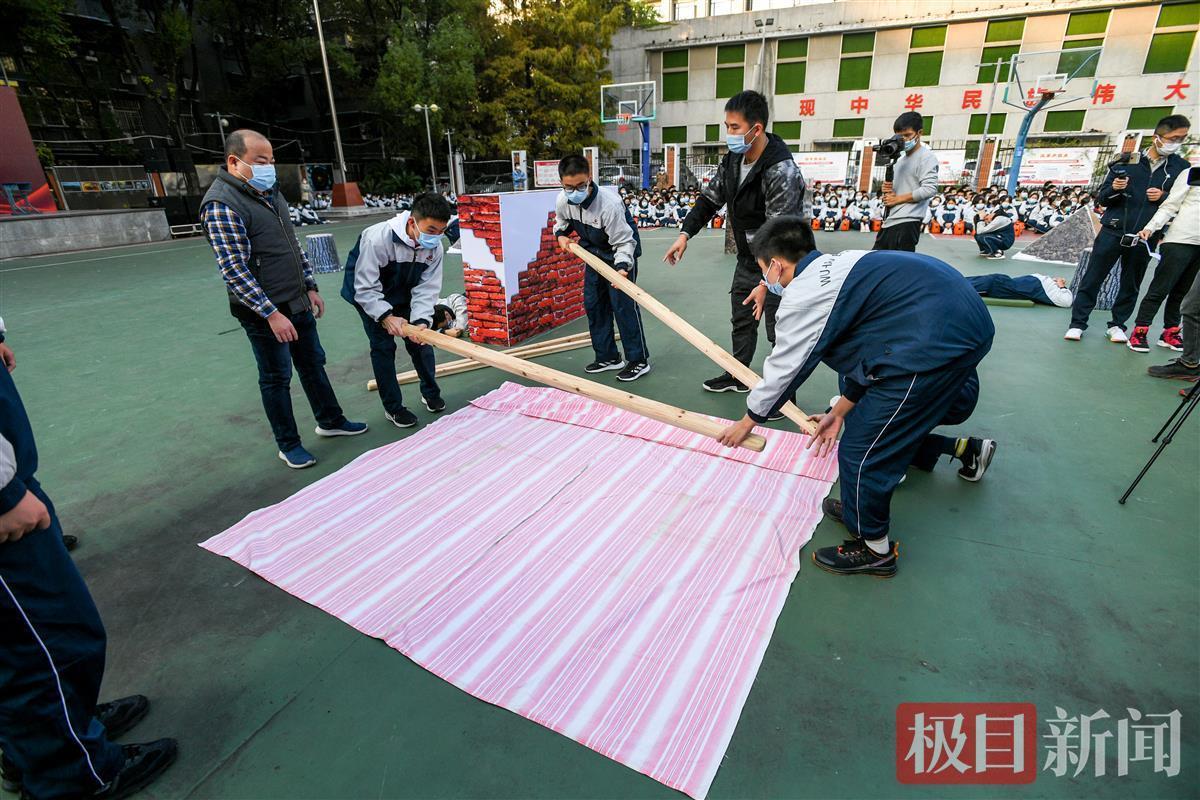 “我学了蛮多实用技能,回去也会给爸爸妈妈讲。今天演练日子很特殊,也是为了让我们铭记历史,我们青年一代也要努力学习,担起民族复兴的责任。”该校初三八班14岁的王梓豪告诉极目新闻记者。