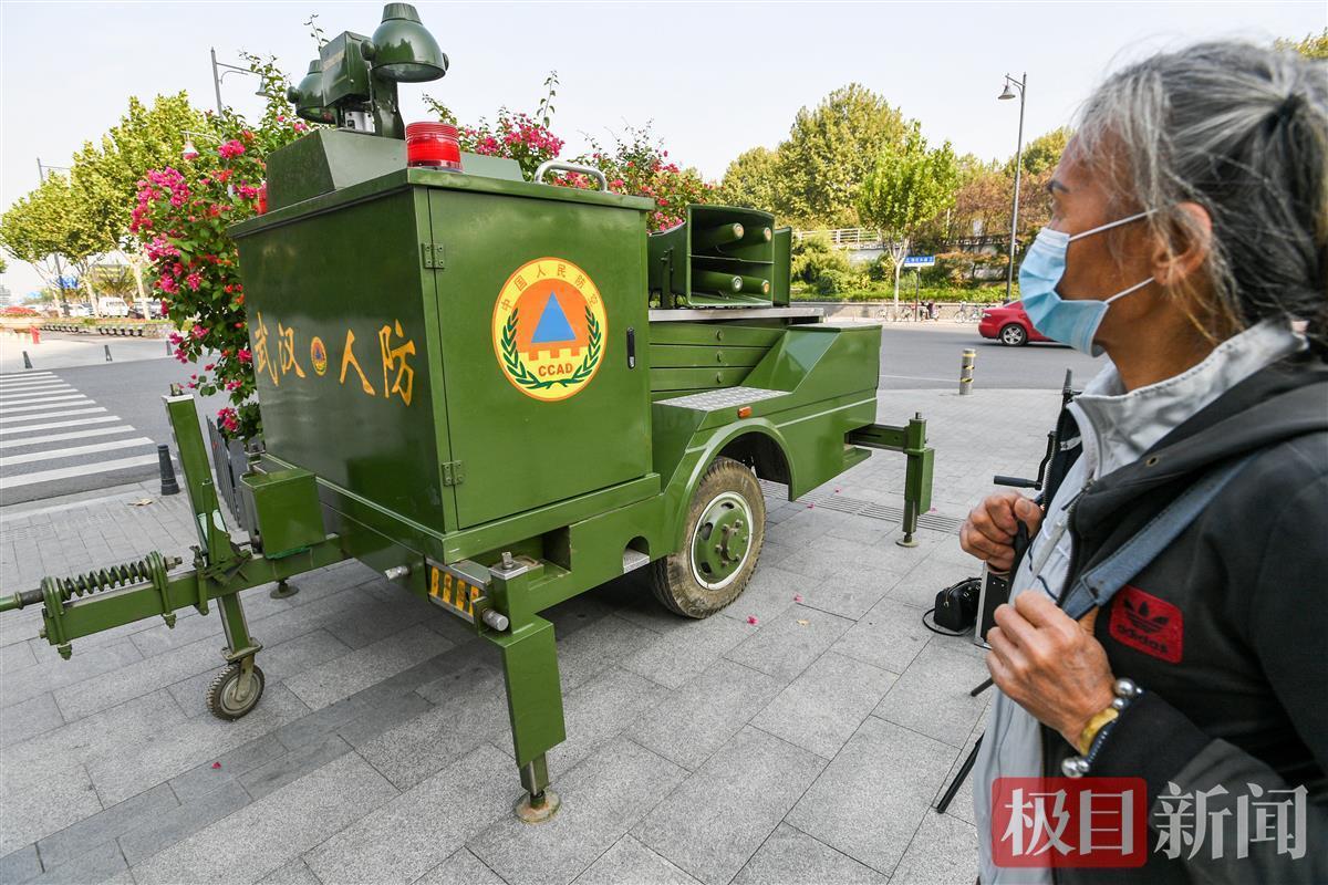而在今天的沿江大道与一元路交汇处,停放了一辆移动式升降电声警报器,这台设备在下午4时拉响了防空警报,引来不少市民驻足观看。市民秦女士告诉记者,她知道10月25日是武汉沦陷日,她的女儿从小在外地长大,近日回汉。因此,特意趁今天带女儿参观江汉关,到临江大道看看老建筑,了解武汉的历史。“我第一次知道武汉播放防空警报的日子是在今天和它的意义,我也会记住这段历史。”秦女士女儿告诉记者。