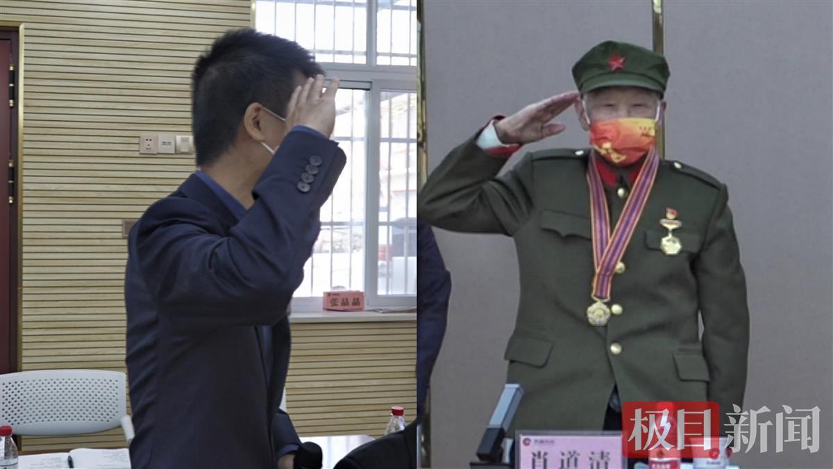 71年前的志愿军战歌,成了“强国之音”。歌声回荡,山河无恙。英雄无名,祖国不忘。在热烈的掌声中,老战士肖道清深情地讲起了抗美援朝故事,回溯71年前战火纷飞的峥嵘岁月。说起在抗美援朝前线打仗的经历,肖道清思路清晰,如数家珍。在党的领导下,他和他的战友们跨过鸭绿江,一起爬冰卧雪、在零下三十多度的战场上枕戈待旦、奋勇搏杀,身边无数战友倒在了血泊中,他们用生命,用铁一般的意志和信仰,打退了美帝国主义的侵略野心,保卫了新中国。