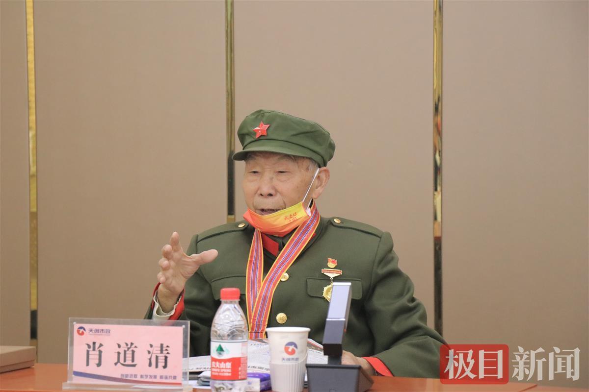 肖道清勉励天创公司的青年一代要传承好抗美援朝精神,不忘初心、牢记使命,凝聚力量努力奋斗报效祖国。 台上,年近90岁的抗美援朝老战士肖道清讲得激情澎湃;台下,一位位90后、95后青年人听得认真。聆听完老战士的抗美援朝经历,与会的年轻员工纷纷举手示意想与老战士进行对话交流。听着肖道清老战士的讲述,95后员工周希几次落泪。前不久,她刚看完电影《长津湖》。她说,电影《长津湖》中有个镜头,美军吃着火鸡,而志愿军战士只能在严寒中“一天一个冻土豆”的情节。作为新时代的青年,要永远铭记志愿军战士们舍生忘死、向死而生的民族血性,在工作中要经得起挫折的捶打,做到越挫越勇。 今年被天创公司表彰为2021年“优秀共产党员”称号的岳雯雯,是一位95后年轻党员。她说,从肖道清老战士的讲述以及与其他同志的交流中,不禁想起曾经学过的抗美援朝历史,正是伟大的人民志愿军保家卫国,才换来了今天的和平安宁。