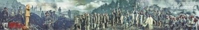 此次公布的军威版海报,超长的画幅设计如长卷缓缓铺开,气势十足。海报呈现出的战场硝烟弥漫、弹片横飞、山丘凹陷,彭德怀总司令用军礼向战士们致敬,经历了残酷战斗的志愿军将士们依然军姿挺拔、意志坚定,为身后的祖国筑起了一道坚不可摧的铁血长城,展示出了最壮阔的军容和最盛大的军威。看到此张海报,有如亲历惨烈震撼的战火硝烟,感受到了爱国将士的豪情血性。