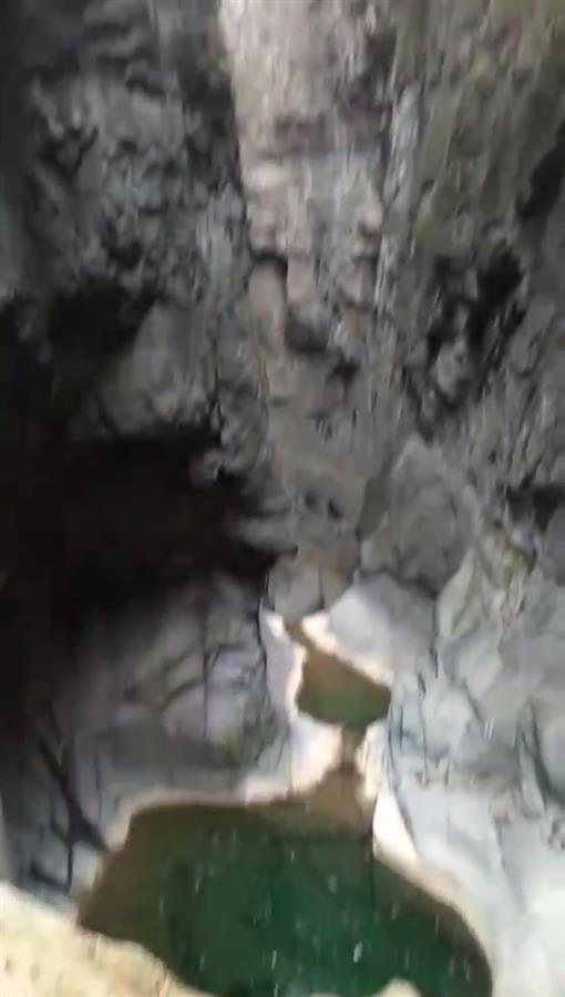 悬崖底部是水潭(视频截图)