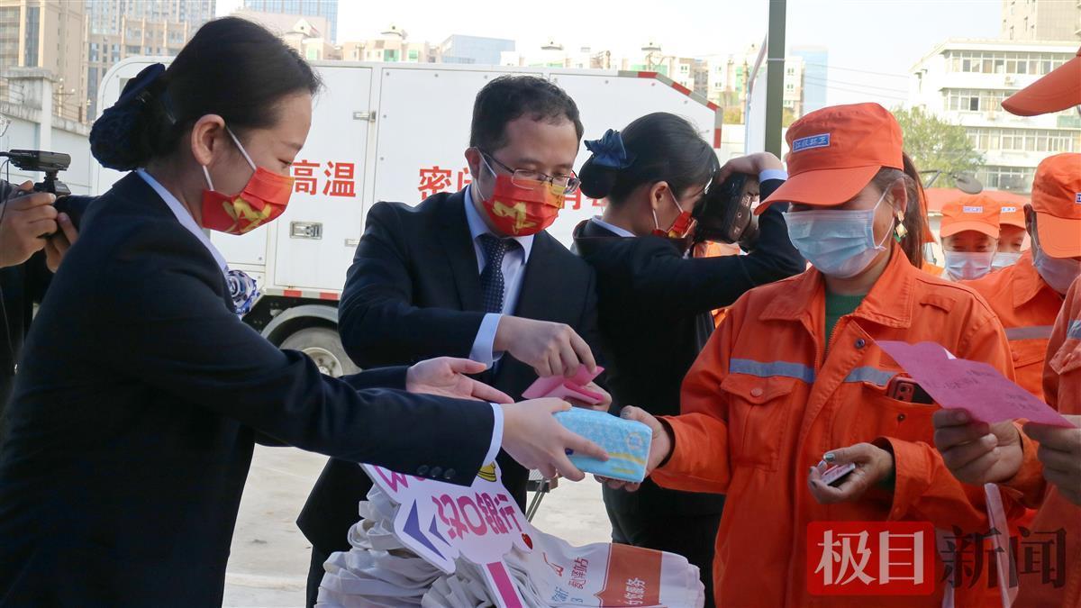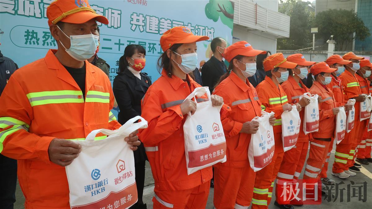 10月25日,在武汉第25届环卫工人节来临之际,汉口银行组织开展“关爱马路天使,共建美丽江城爱心驿站”活动,向辛勤工作在马路上的环卫天使们送上爱心礼包。