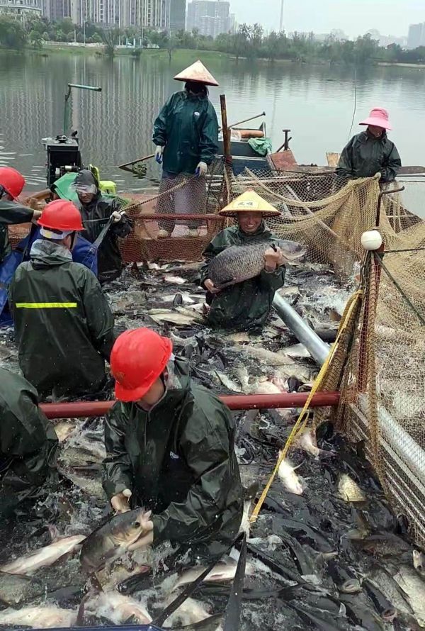 武汉德瑶望种养殖合作社的渔民捕鱼作业,每天起鱼两万斤。
