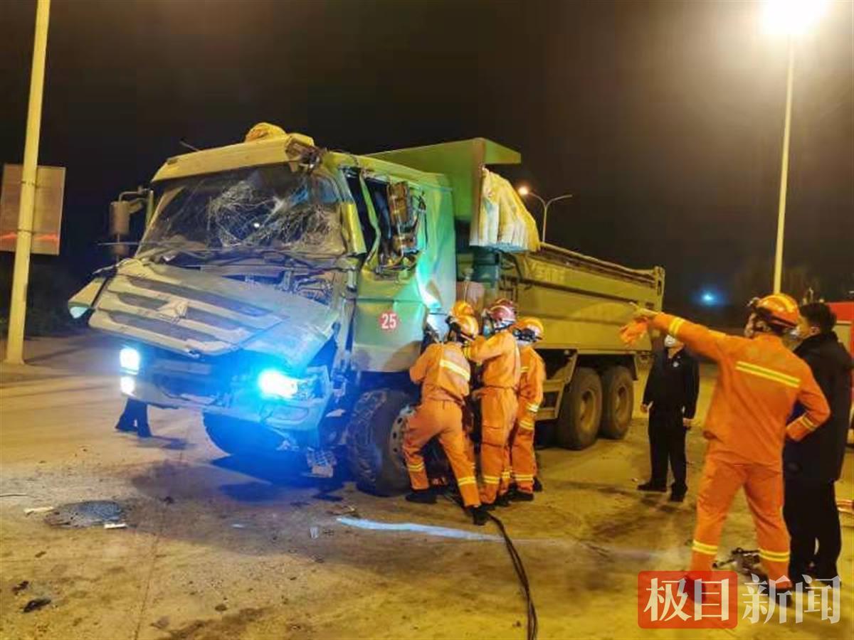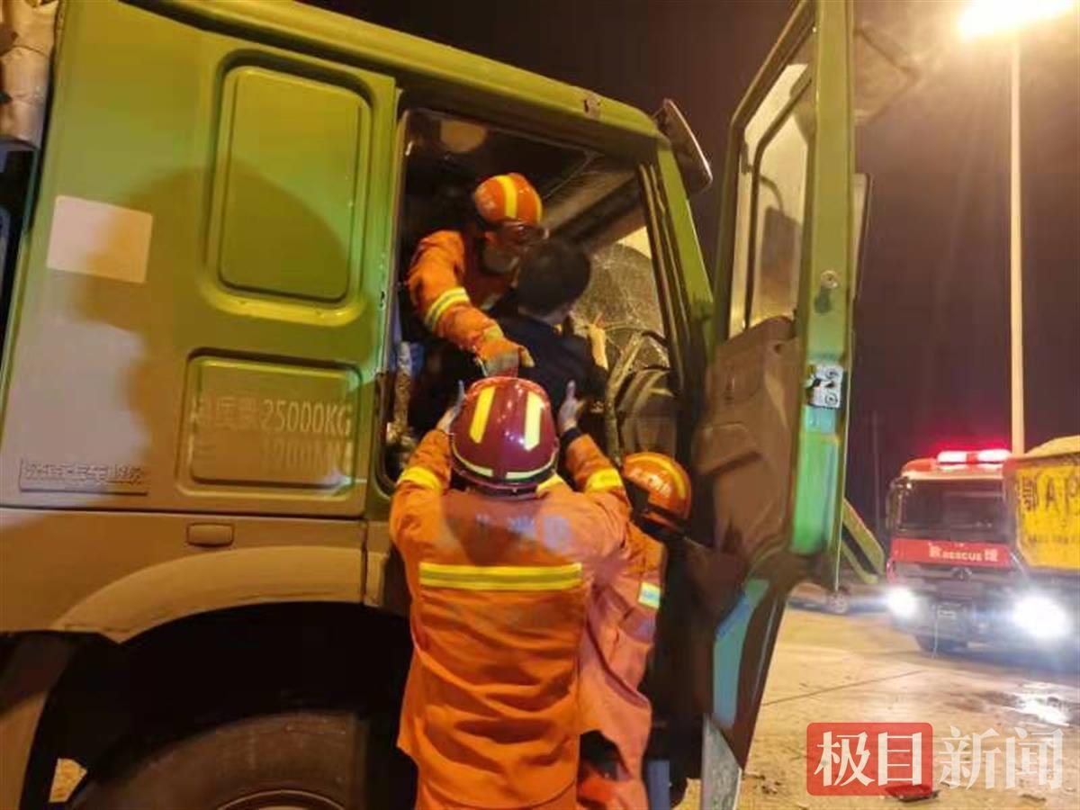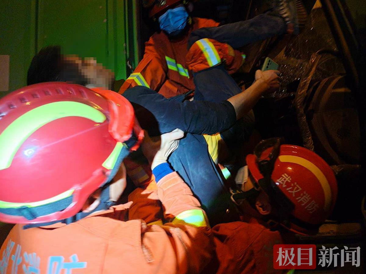 10月26日凌晨4时36分,武汉市洪山区南郊路路口发生一起交通事故,有人员被困,武汉消防119指挥中心立即调度青菱路站消防员赶赴现场实施救援。
