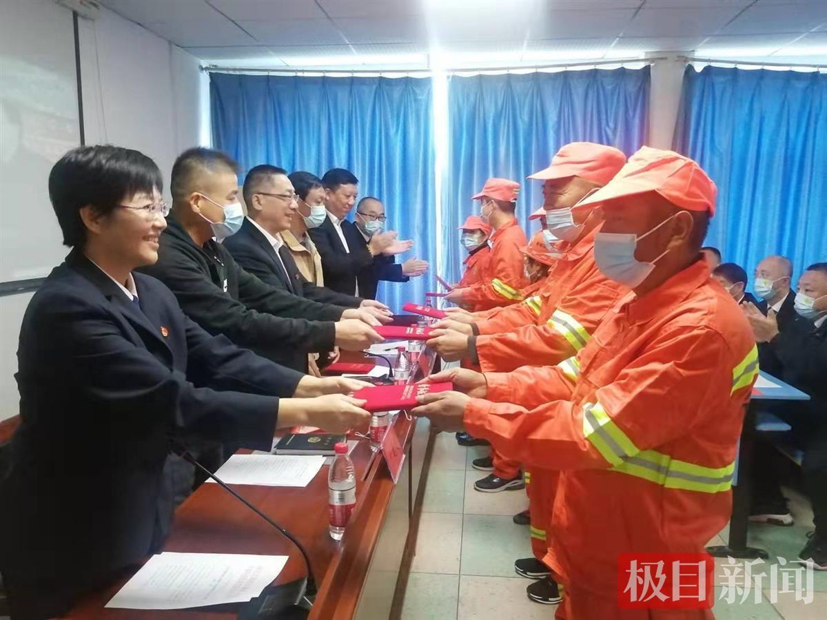 活动上,对周敏等15名优秀环卫工人进行表彰奖励,同时为全体环卫工人送去了关爱毛毯。