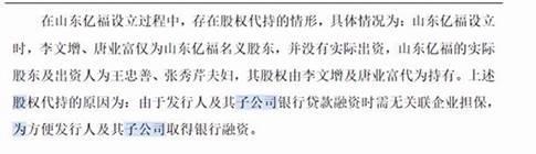 至于山东亿福成立之初找他人代持的原因,梦金园解释称:“发行人及子公司的银行贷款融资需要无关联企业担保,代持为了方便发行人及子公司取得银行融资。”