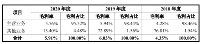 2017年至2020年,梦金园的综合毛利率分别为4.39%、4.35%、6.03%和5.91%,其中主营业务毛利率分别为4.31%、4.28%、5.94%和5.76%。