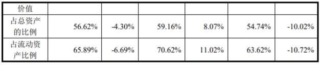 2017年至2020年各期末,梦金园的存货账面价值分别为149,415.99万元、153,329.87万元、174,388.04万元和184,388.40万元,占流动资产的比例分别为71.25%、63.62%、70.62%和65.89%。
