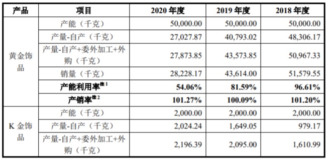 2020年黄金饰品产能利用率刚过半 仍募资扩产