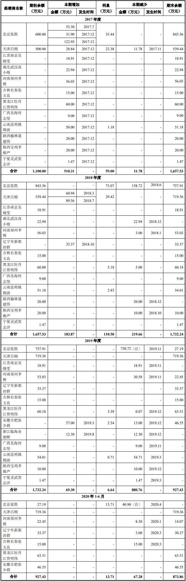 梦天家居招股书显示,北京张凯为公司经销商之一,2017年至2020年1-6月与公司存在非经营性资金往来。