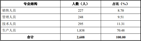 截至2020年6月末,梦天家居共有销售人员227人,管理人员248人,技术人员295人,生产人员1838人。