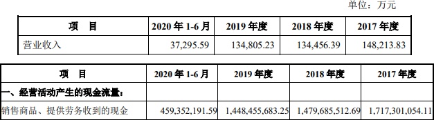 2017年至2020年1-6月,梦天家居营业收入分别为14.82亿元、13.45亿元、13.48亿元、3.73亿元;销售商品、提供劳务收到的现金分别为17.17亿元、14.80亿元、14.48亿元、4.59亿元。2018年、2019年,梦天家居营业收入增速分别为-9.28%、0.26%。