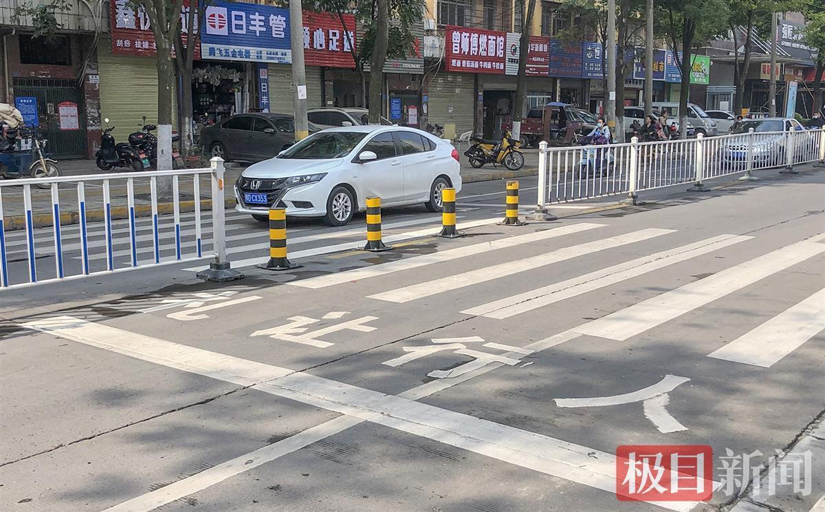 极目新闻记者从秦先生家所在的洪垸小区后门出发,试图步行到马路对面,可向东步行了几百米却没有发现一个过街通道。记者走到沙市区政府门口看到,道路中心护栏开了一段缺口,并划定了人行斑马线。