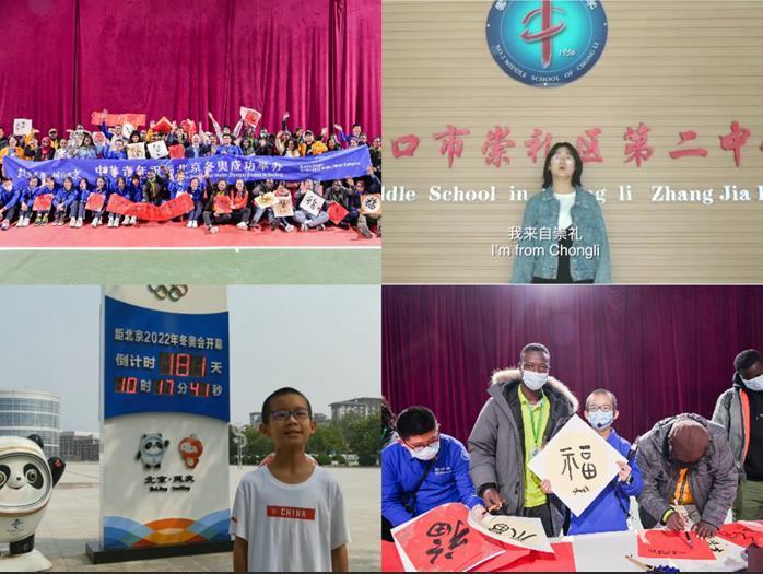 来自冬奥会主办地北京市延庆区和张家口市崇礼区的中学生代表作为活动的特邀嘉宾积极参与并提交作品。来自延庆的同学们还与参加第六届中非青年大联欢的非洲在京留学生和青年代表一起走进冰雪运动训练场馆进行互动交流,共同书写“福”字,祝福北京冬奥会,并号召各国小伙伴共同关注冬奥会,大家携手“一起向未来”。
