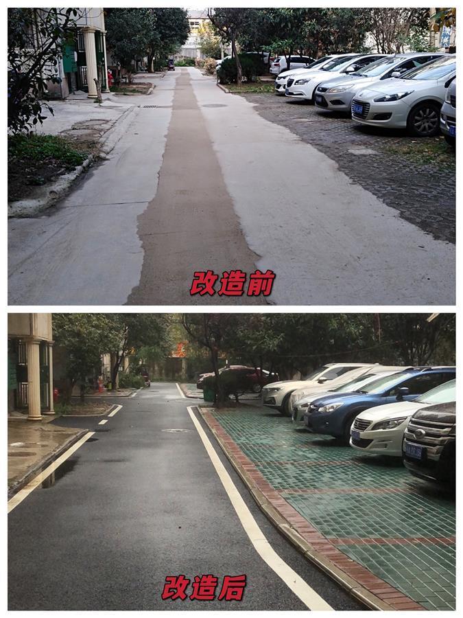 金秋十月,近20000平方米的小区道路“刷黑”工程完成,小区业主相聚在一起见证20年的老旧小区第一次有了如此平坦、高质量的马路,宁静的傍晚,业主信步在新铺设的路上,脸上流露出的是幸福的笑意。