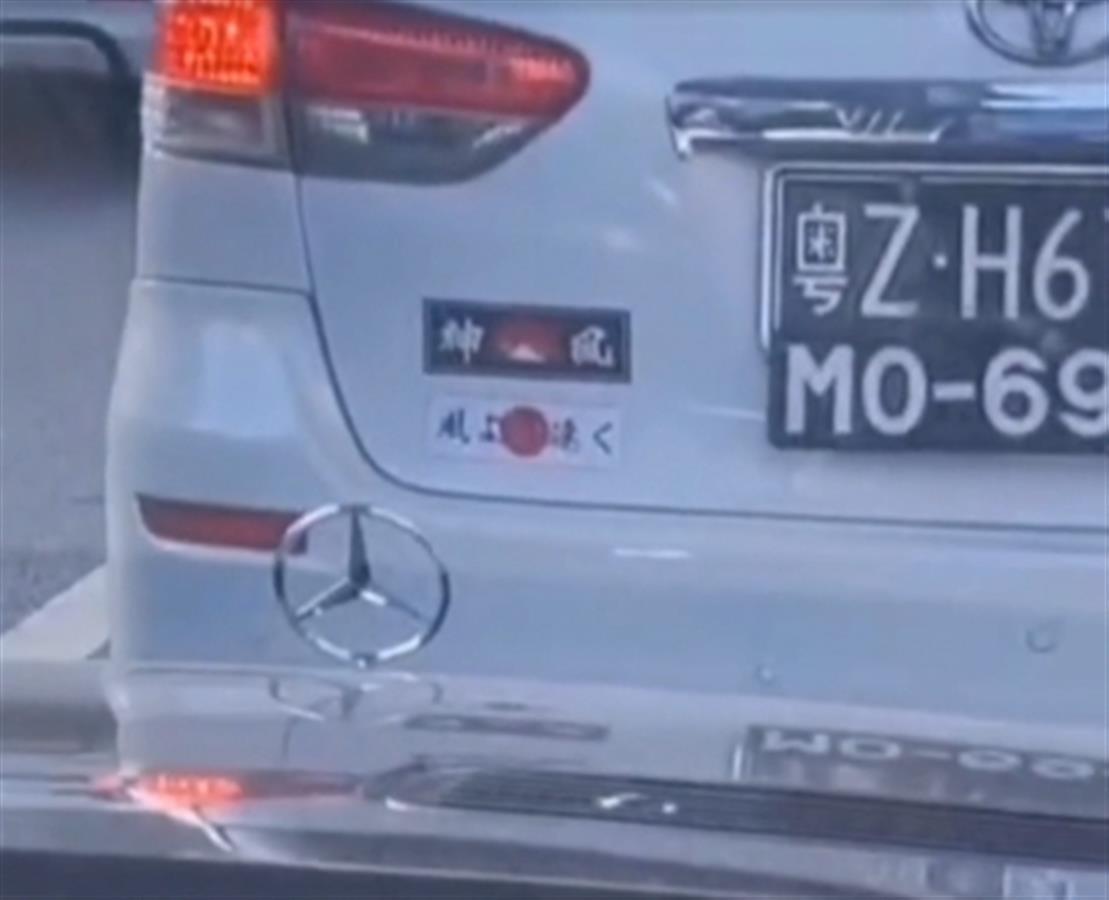 10月27日,网友爆料称,广东省深圳市街头有一辆丰田牌汽车张贴着“神风”字样和日本国旗样式的车贴,希望有关部门可以对其进行处理。网友发布的视频显示,该车辆后备箱门左下方张贴有神风特工队及日本国旗的标志。