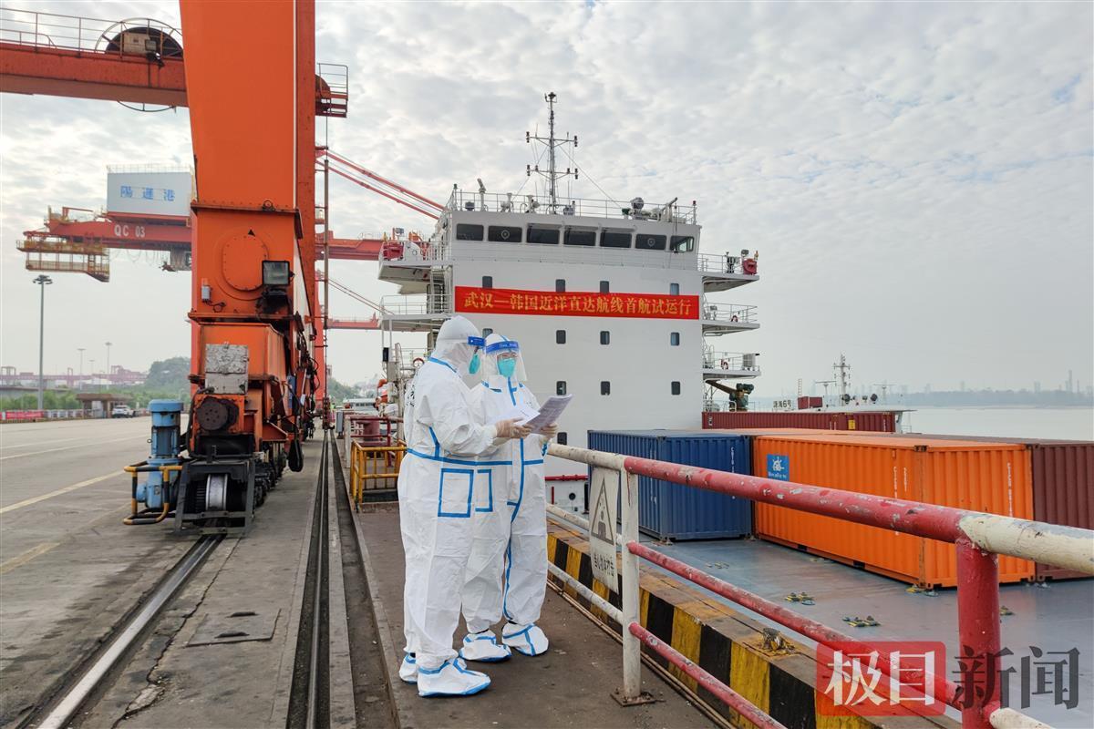 10月27日,武汉至韩国江海直航航线顺利首航。首航搭载着2500余吨的冰箱、汽车配件、防护用品等各类商品,预计10月31日抵达韩国釜山港。