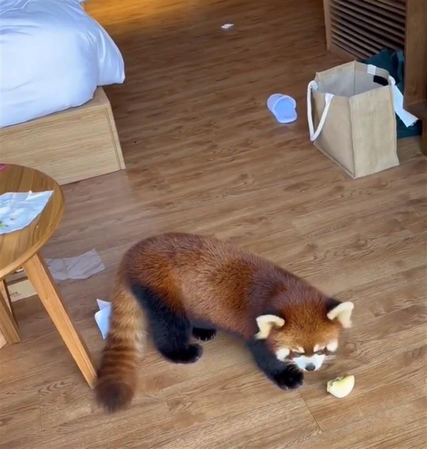 不过,小熊猫好像是个例外。10月28日,极目新闻记者就小熊猫进屋致电该酒店,工作人员证实确有此事发生,酒店未禁止小熊猫与人接触,但也并非入住酒店一定有小熊猫进屋,小熊猫如何行动“全看它自己”。