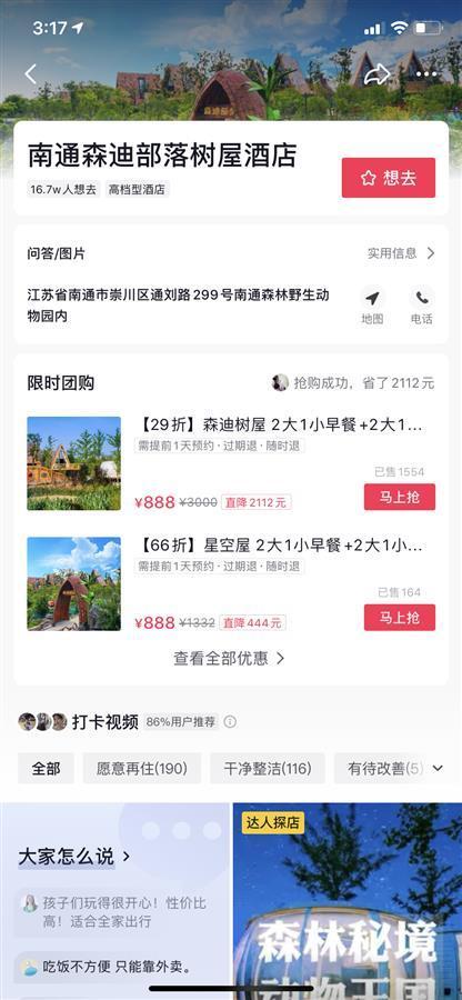 极目新闻记者发现,张女士入住的是南通森迪部落树屋酒店,该酒店位于江苏南通森林野生动物园内。除了张女士外,此前也有游客在网络上传小熊猫进屋的视频。
