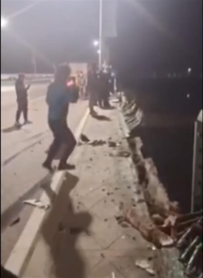 视频显示,黑龙江省齐齐哈尔市北江桥一侧护栏有十多米被撞毁,其中一段护栏已经完全坠入江中。桥面上车辆部分碎片和被撞毁的桥体护栏清晰可见,有市民在围观。据拍摄者介绍,坠江车辆为一大货车,事发地江水较深,坠江后已看不到车辆踪影。另一段视频显示,当地警方已经赶到现场,连夜对事故车辆进行打捞,搜救坠江司机。