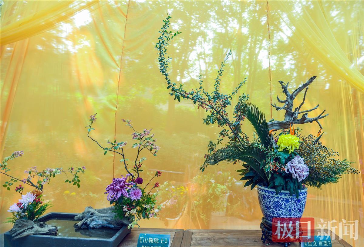 汉阳琴台绿化广场菊展区,展示插花花艺