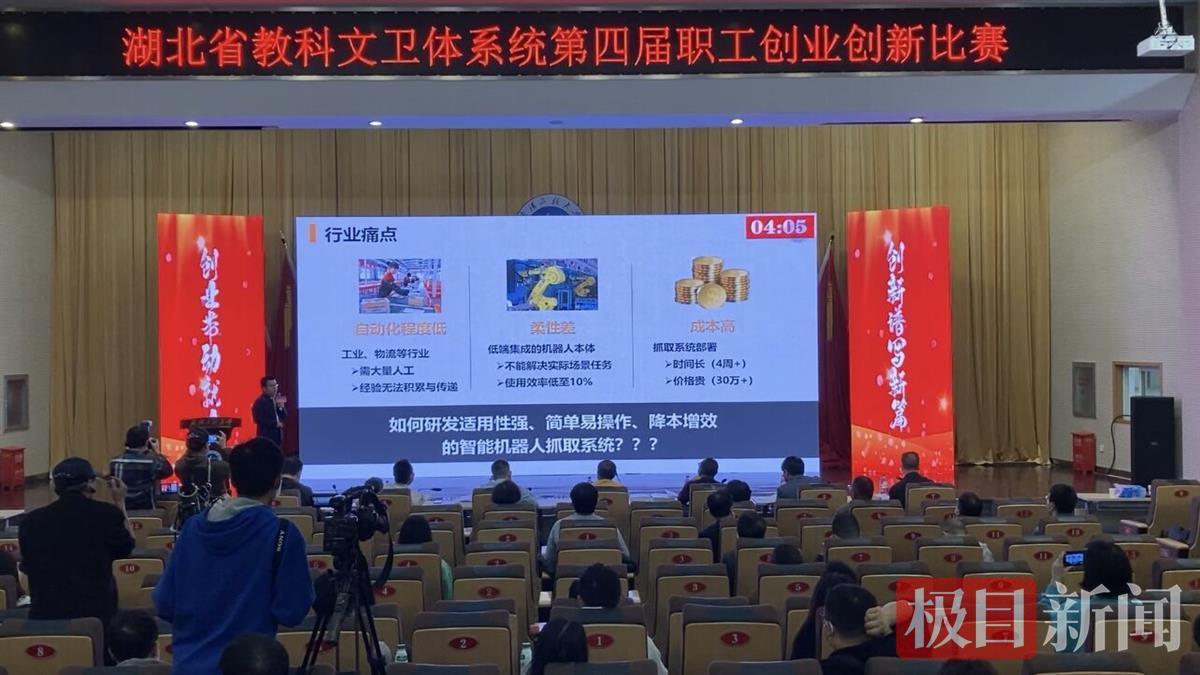 10月28日至29日,湖北省教科文卫体系统第四届职工创业创新比赛暨湖北省第四届“工友杯”职工创业创新大赛21赛区比赛在武汉工程大学进行。本次比赛由湖北省科教文卫体工会主办,武汉工程大学工会承办,来自武汉大学、华中科技大学等湖北省29所高校和企业的100参赛项目进入正式比赛,其中,创新组项目71个,创业组项目29个。根据比赛安排,每位参赛选手进行5分钟PPT路演,回答来自创投界的6名评委和工会评委的提问,7名评委则根据技术创新、创业团队、带动就业作用等一系列标准打分,决出比赛排名。