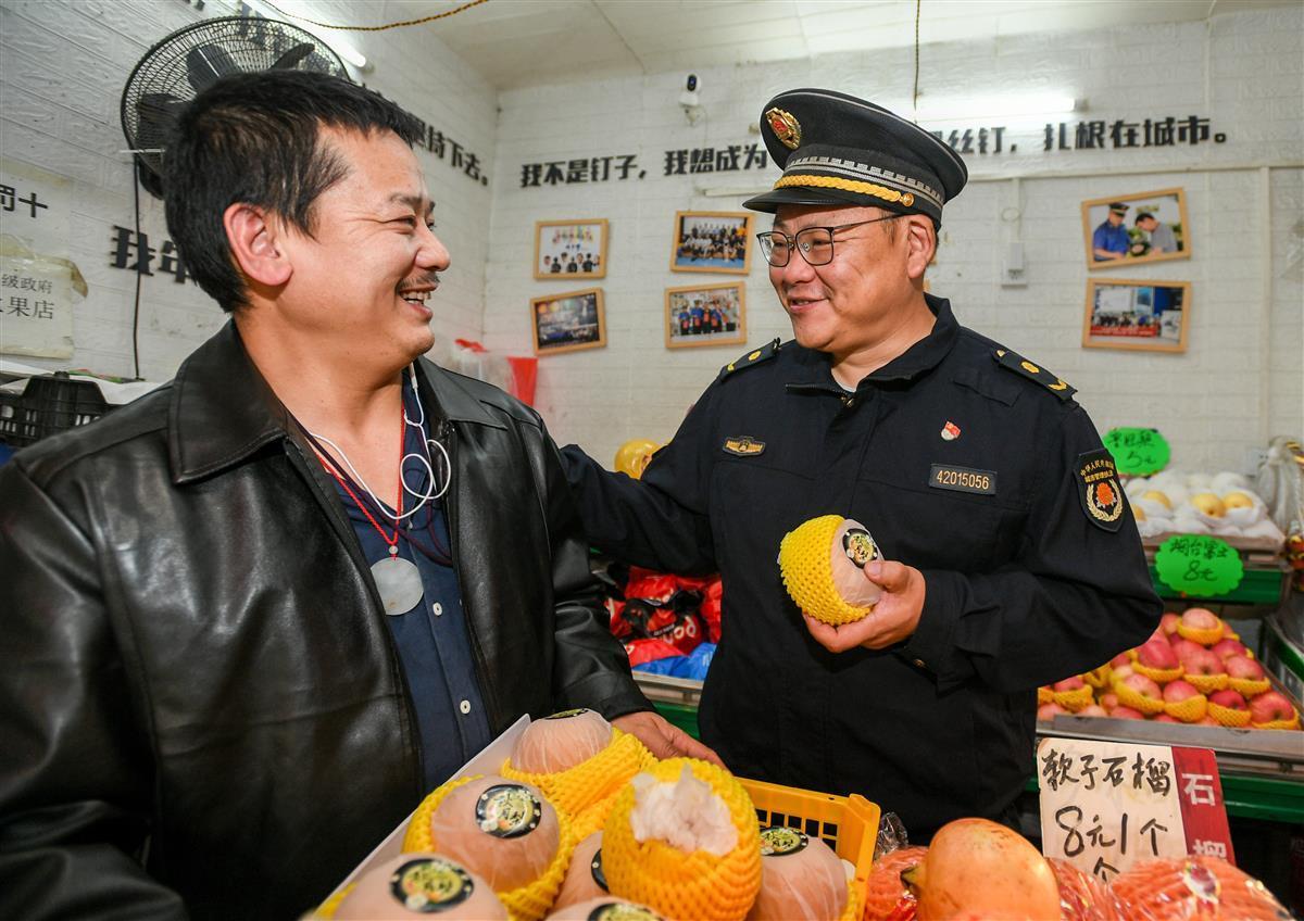 “我们帮你找一个岗亭,借你临时过渡。”胡毅峰因势利导:2年后,你们要退出岗亭,用赚的钱,再租个门面经营。“那成。”王天成被胡毅峰的诚心所打动。他带着儿子媳妇,搬进了荷兰风情园门口的城管岗亭,经营起水果店。为表谢意,王天成的儿子王兆阳把小店取名为“开心水果店”。